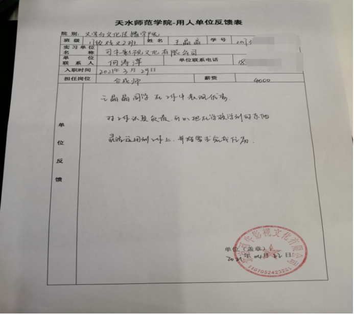 凤凰数字媒体教育产品(成都)研发中心根据实习生的特长与兴趣,注重影视数媒的实际操作能力的培养,对每个实习生都提出针对性的培训方案,取得了切实的实训效果,实习生对此较为满意。