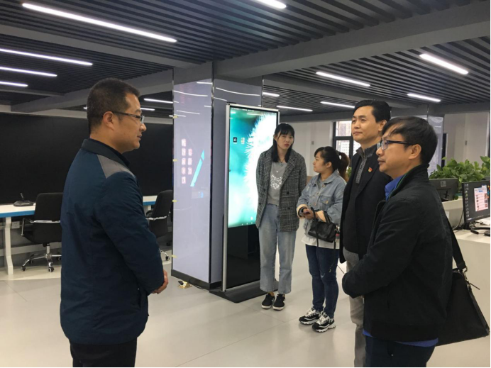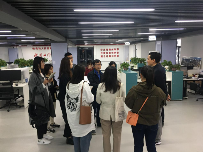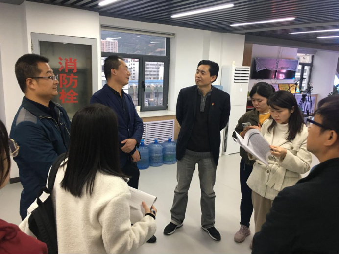 在秦州区融媒体中心,潘教授一行实地察看融媒体采编中心、演播厅等处,详细了解了秦州区融媒体中心建设运行、机构设置、人员配备、运营模式、面临的困境和未来发展规划等情况。