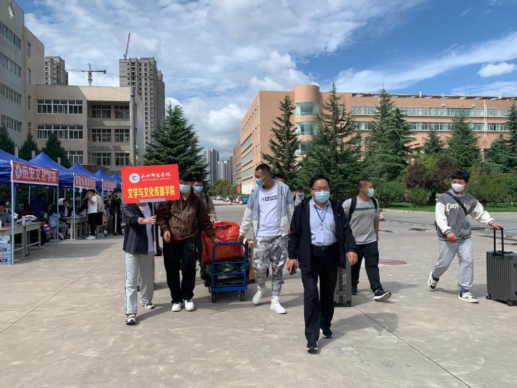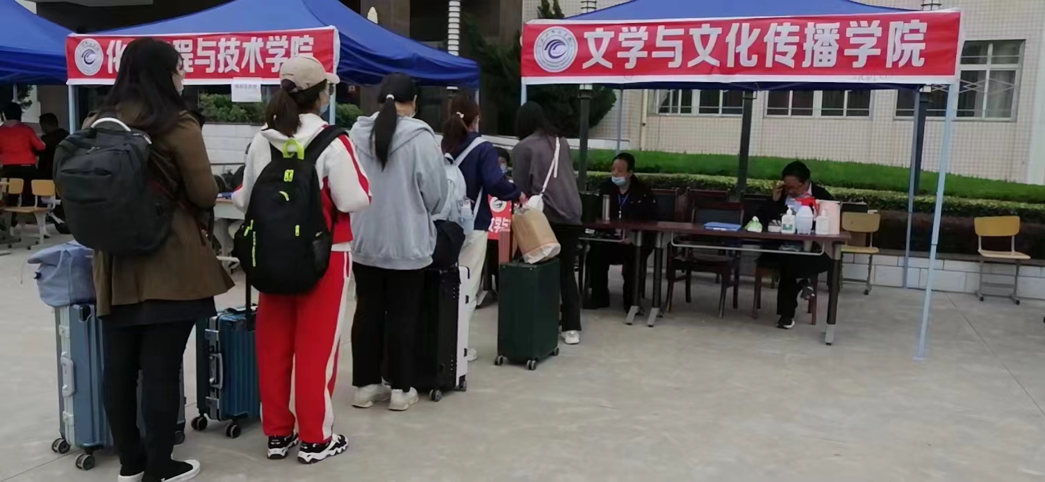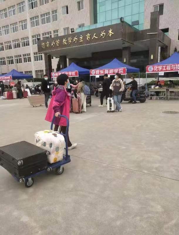 返校中,全体教职工化身志愿者,投入到迎接学生返校工作之中,为返校学生提供志愿服务。一包一包的行李、一句一句的叮咛,一趟一趟的护送……为保障学生安全、顺利、有序返校,文传学院在严格落实校园疫情防控各项措施的同时,精心部署、周密安排,为返校学生提供精准、便捷、温暖的服务。
