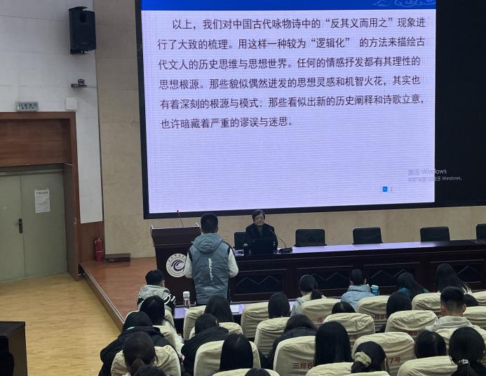 讲座最后,霍老师鼓励同学们踊跃发言,积极思考,对这一话题提出自己的观点,并就同学们的问题进行了解答,加深了同学们对“反其意而用之”现象的认识。同学们在聆听讲座的过程中秩序井然,表示出了极大的学习兴趣。