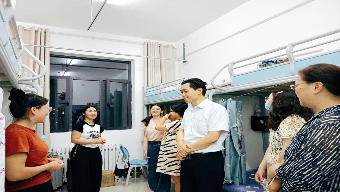 王贵禄院长和两位老师对新生宿舍情况进行视察并提出合理建议,把学生的安全放在第一位,充分了解新生在住宿方面的需要和问题。同时给大家提出要求,要保持宿舍的整洁有序,以此营造良好的学习环境。