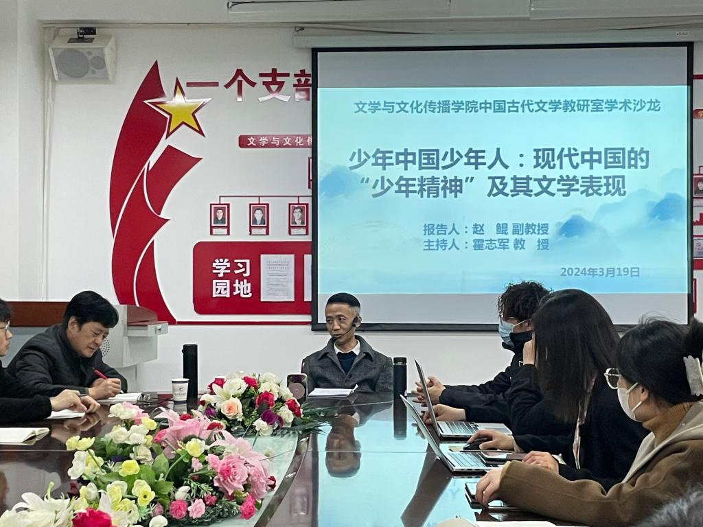 3月19日晚,由beat365中文官方网站中国古代文学教研室举办的学术沙龙活动在四号教学楼208会议室举办。此次沙龙活动由赵鲲老师主讲,霍志军老师主持,安涛、王德军、陈芳芳、王吉祥、孔会侠等老师以及2021级、2022级、2023级全体中国古代文学研究生参与。