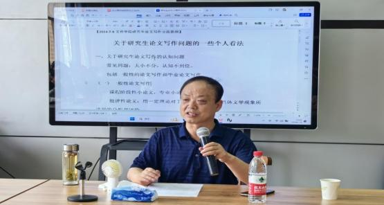 2024 年 7 月 9 日,beat365官网邀请王元忠教授在雷达文学馆开展论文写作指导交流讨论会,孔会侠副教授及23 级研究生等参加此次活动。本次活动旨在从文传学院研究生论文写作中的困惑出发,对研究生论文写作进行具体深入的指导,以促进同学们论文研究思路的形成和具体写作能力的提升。
