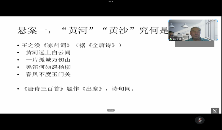 中国唐代文学学会顾问薛天纬教授应邀做线上学术报告