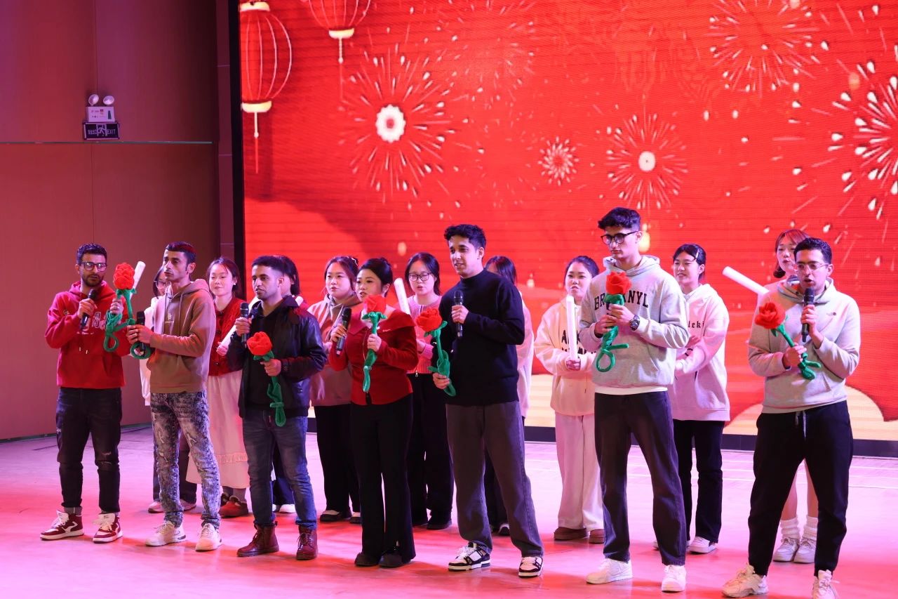 “长歌致远”篇章:从情境诗表演《渔家傲》开始,涵盖舞蹈《哈尼宝贝》、武术表演《扶摇》、创新节目《课桌操》、情景剧《识骗有术》、朗诵《红色家书》以及全体演职人员合唱《我们都是追梦人》将整个晚会氛围推向高潮,最后领导嘉宾与演职人员合影留念。