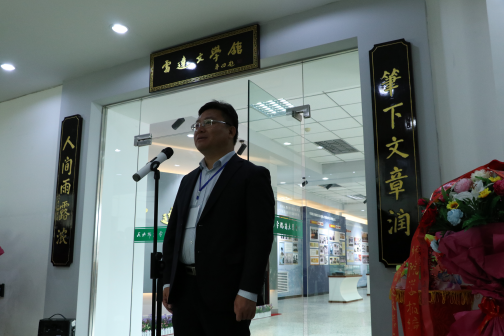天水师范学院副校长王文东教授主持开馆仪式。校长安涛教授致辞,他代表学校对各位嘉宾的到来表示诚挚的感谢和热烈的欢迎。《小说选刊》副主编李晓东代表中国作家协会发表了热情洋溢的讲话,他对雷达文学馆的建成表示热烈的祝贺,也希望以此为契机,将文学馆建成西部重要的现当代文学资料中心、研究基地,为现当代文学的研究做出应有的贡献。