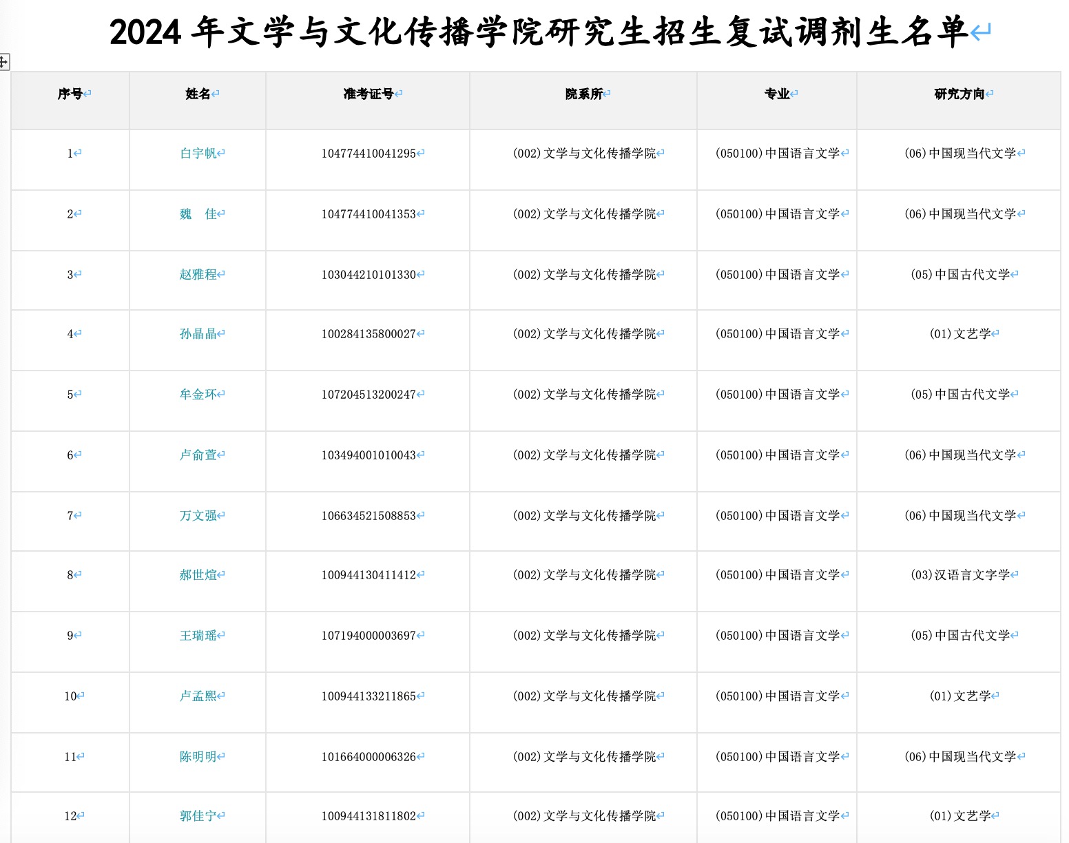 2024年beat365中文官方网站研究生招生复试调剂生名单