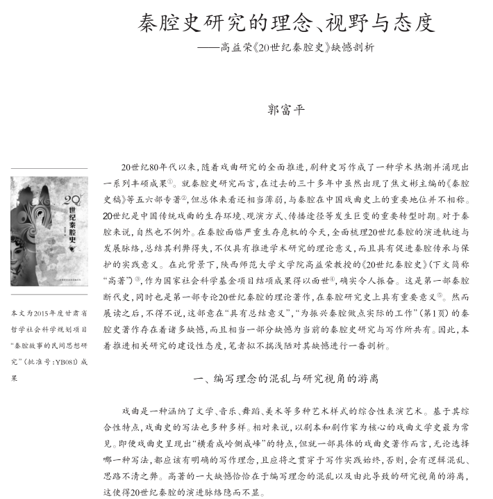 郭富平副教授的论文《秦腔史研究的理念、视野与态度——高益荣〈20世纪秦腔史〉缺憾剖析》(《文艺研究》2019年第7期)获三等奖,此文系甘肃省社科基金项目阶段性成果。