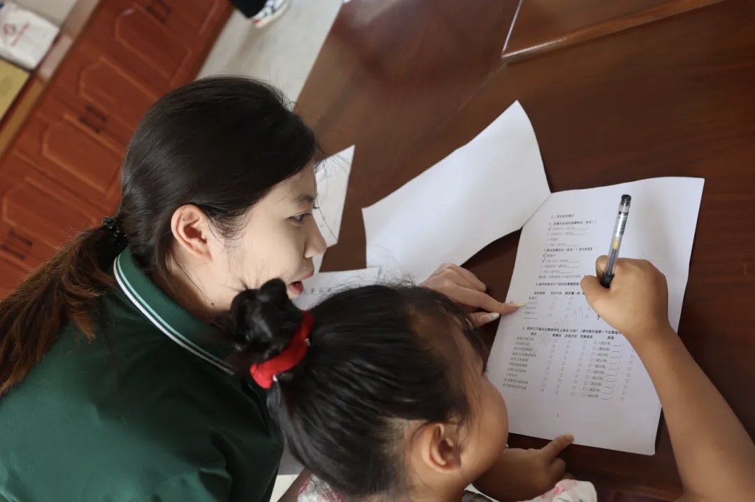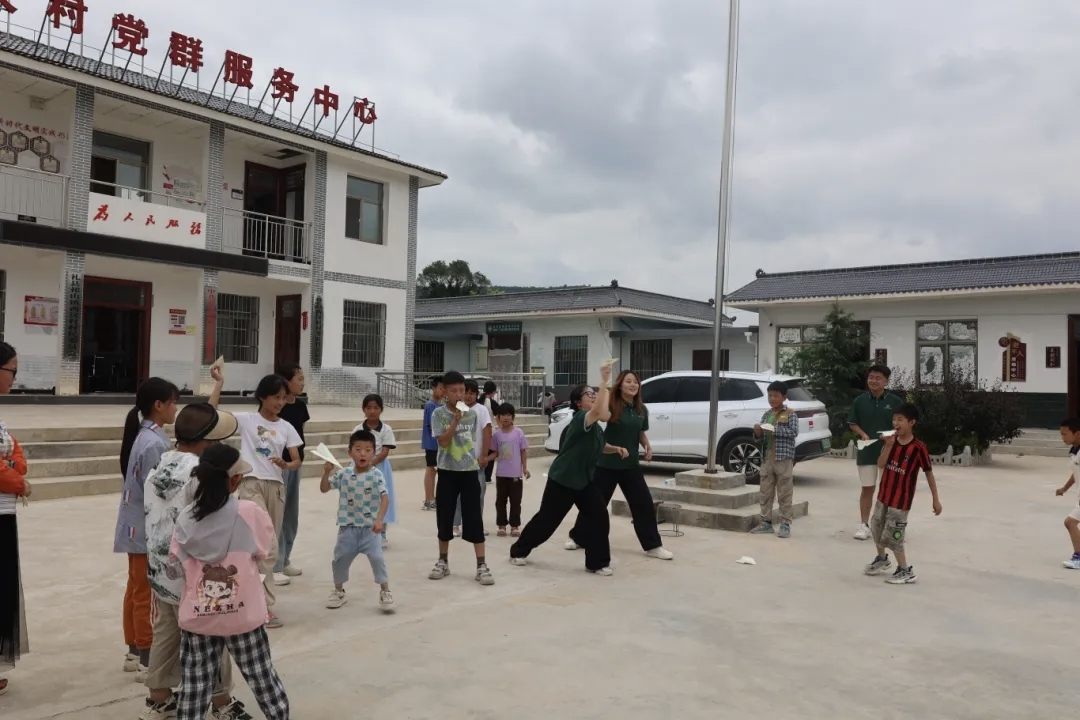 支教活动中,因为赵家村的学生年龄较小,所以支教组队员针对当地学生开设了趣味课堂。首先,队员们先教孩子们做手工,拉近与孩子们的距离。然后他们教孩子们歌唱简单易上口的儿歌,用生动的语言讲述三国故事,队员们巧妙融入普通话表达训练,通过歌词跟读、故事复述、情景对话等互动环节,引导孩子们大胆开口。课堂上,孩子们积极参与,笑声与歌声交织,展现出对知识的渴望。团队成员表示希望在他们的帮助下可以让更多青少年儿童自觉成为推广普通话的学习者、传播者和创新者。
