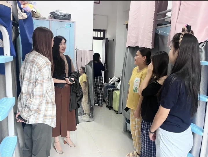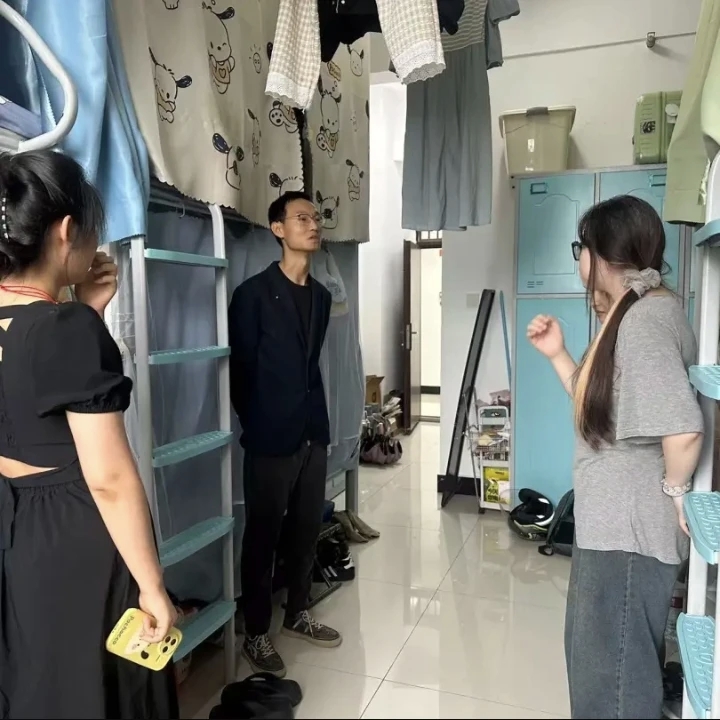 一进宿舍,老师们便与同学们围坐交流,询问新学期学习适应情况。同学们纷纷倾诉学习困扰,如课程难度大、跨学科知识融合难等。老师们结合自身经验,给出调整方法、规划时间等建议,鼓励大家积极求助。同时,老师们关心同学们的日常生活,询问宿舍设施、卫生状况,记录改善建议并承诺反馈。