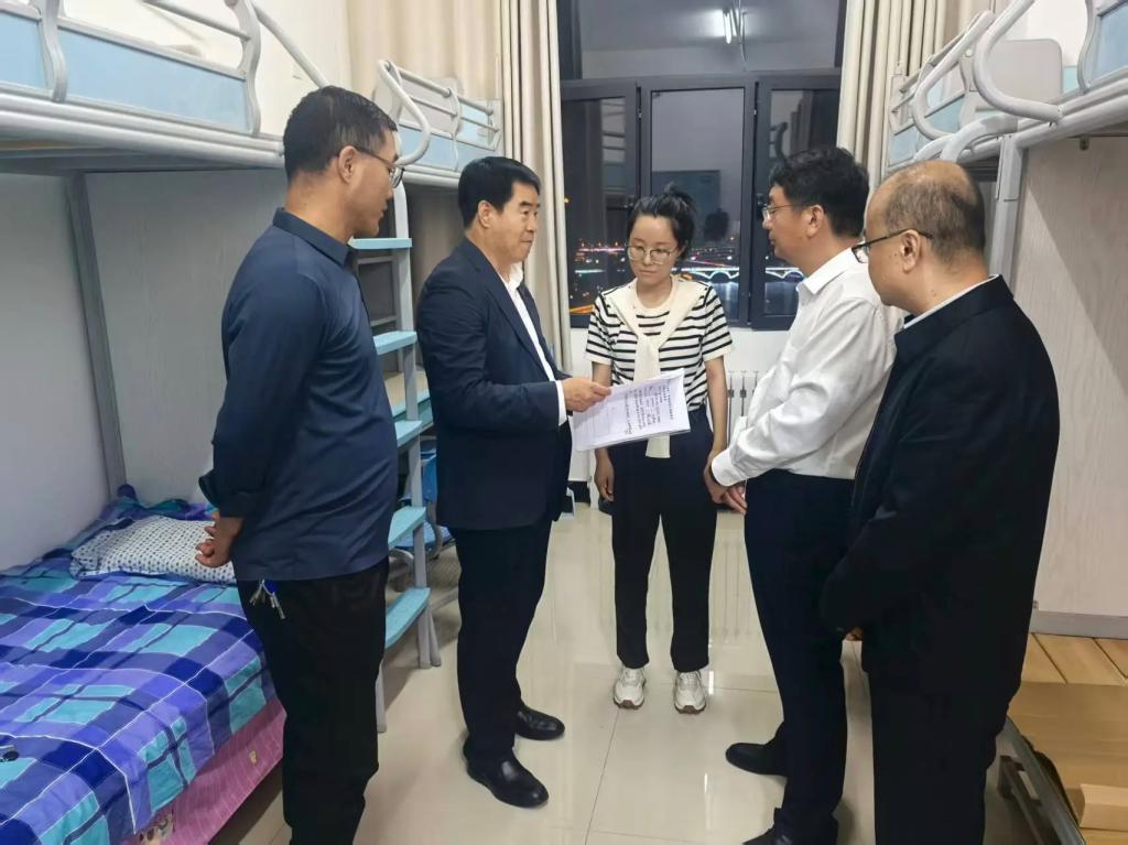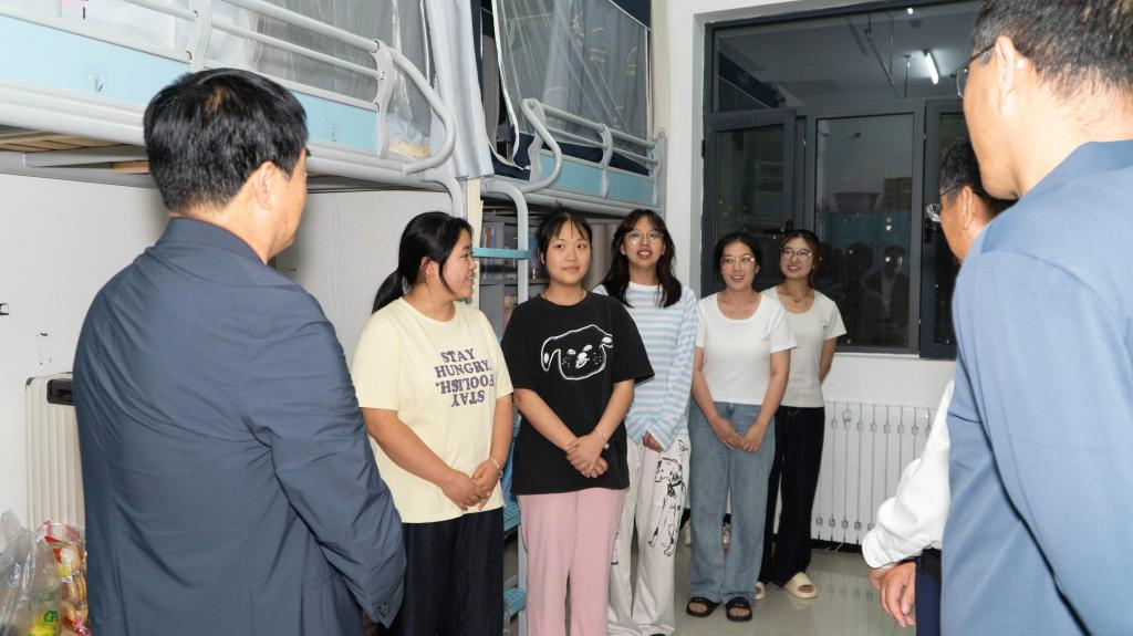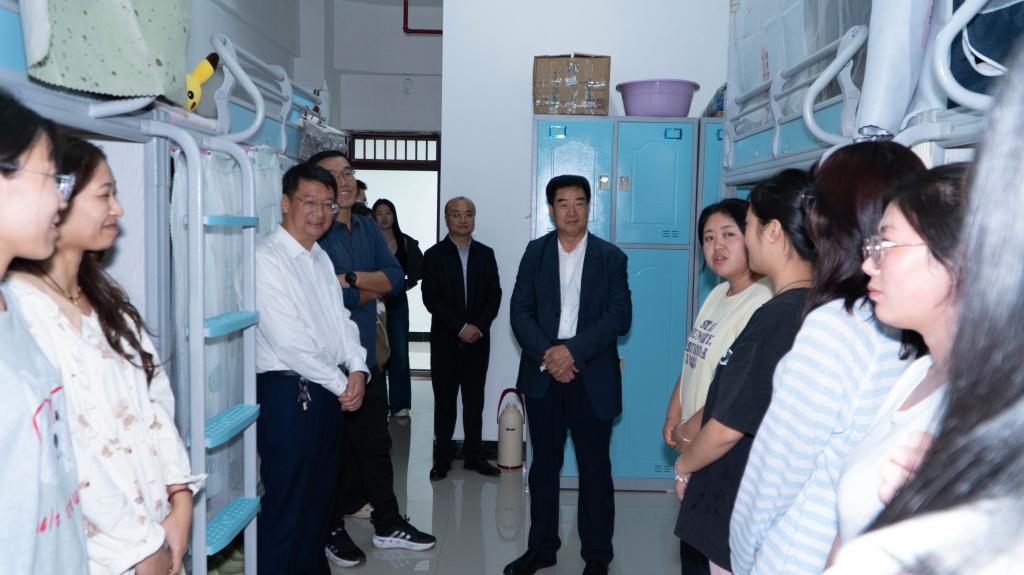 秋风送爽,丹桂飘香!值此2025级新生报到完成之际,党委副书记、校长汪聚应,党委常委、副校长左国防,党委常委、党委宣传部部长武胜文,学院领导班子,新生班主任及辅导员共同走访了新生公寓,了解新生的适应情况和需求,为大家送去学校的温暖与关怀。