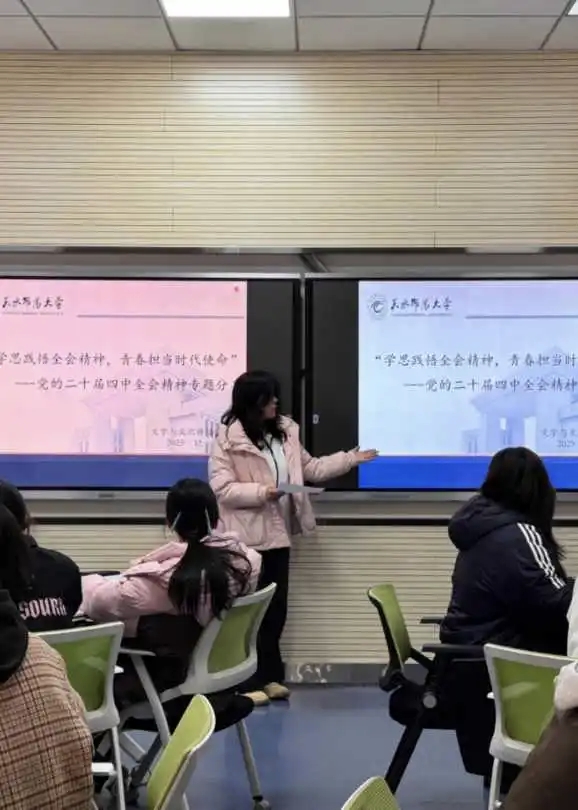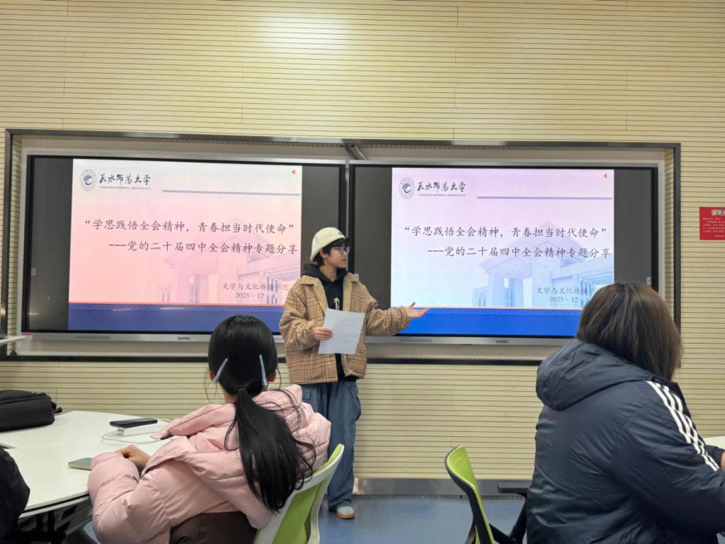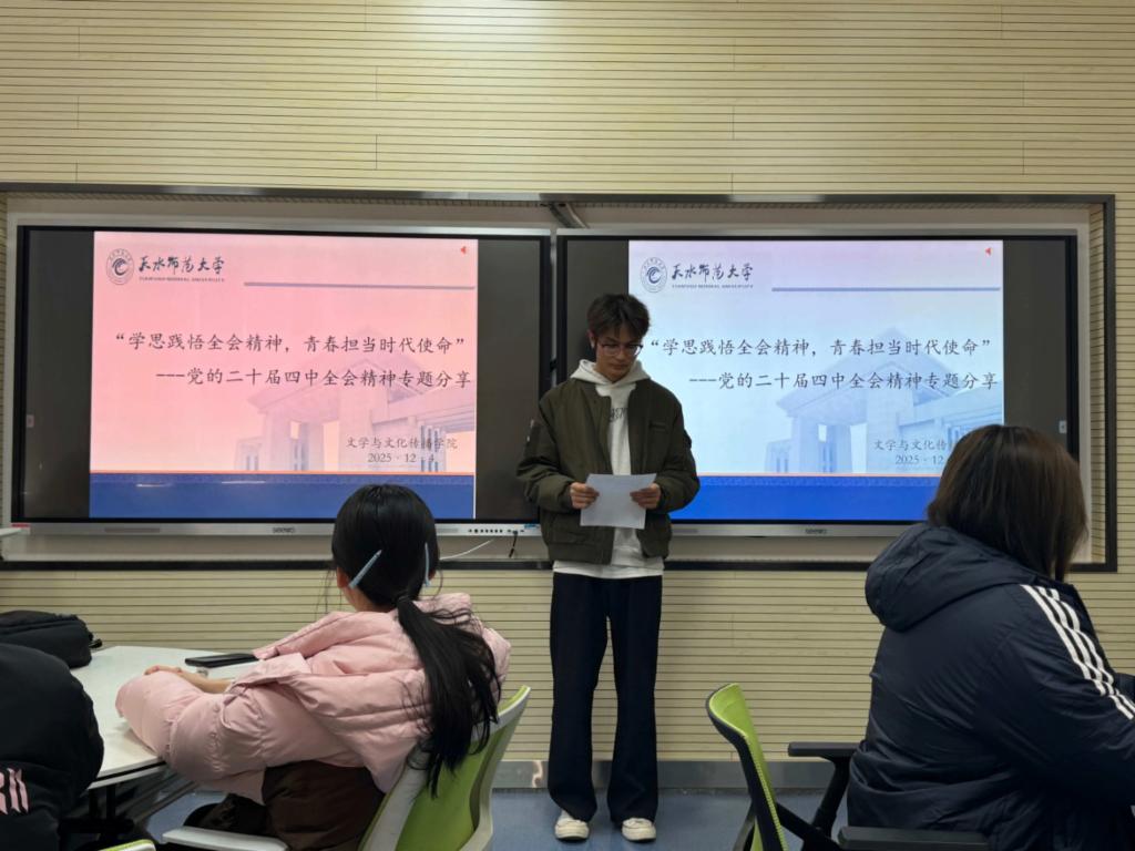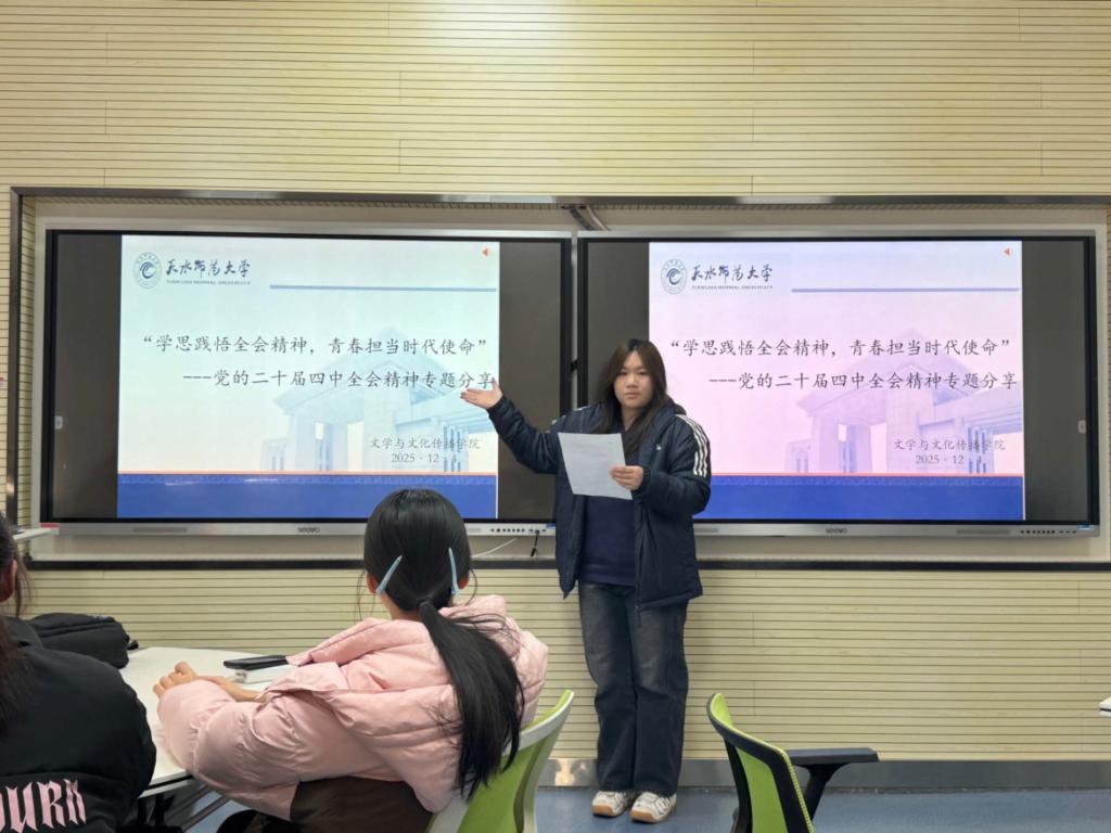 为深入学习贯彻党的二十届四中全会精神,切实把青年学子的思想和行动统一到党中央重大决策部署上来,近日,beat365中文官方网站团学组织以“学思践悟全会精神,青春担当时代使命”为主题,精心策划开展集体学习会、专题分享会、特色团日活动等系列活动,构建“全员参与、全域覆盖、全程贯通”的学习格局。各团支部紧扣“文化自信自强”“教育强国建设”等核心话题,结合汉语言文学、数字媒体艺术、网络与新媒体等专业特色,通过团支部书记领学、原文研读、心得交流等多元形式,推动全会精神在青年群体中落地生根、入脑入心。系列活动不仅让学子们深刻领会了全会的重大政治意义、理论意义和实践意义,更激发了大家将个人理想融入国家发展大局的责任感与使命感,在全院掀起了“深学细悟、笃行实干”的学习热潮,为培养有理想、敢担当、能吃苦、肯奋斗的新时代文传青年筑牢思想根基。