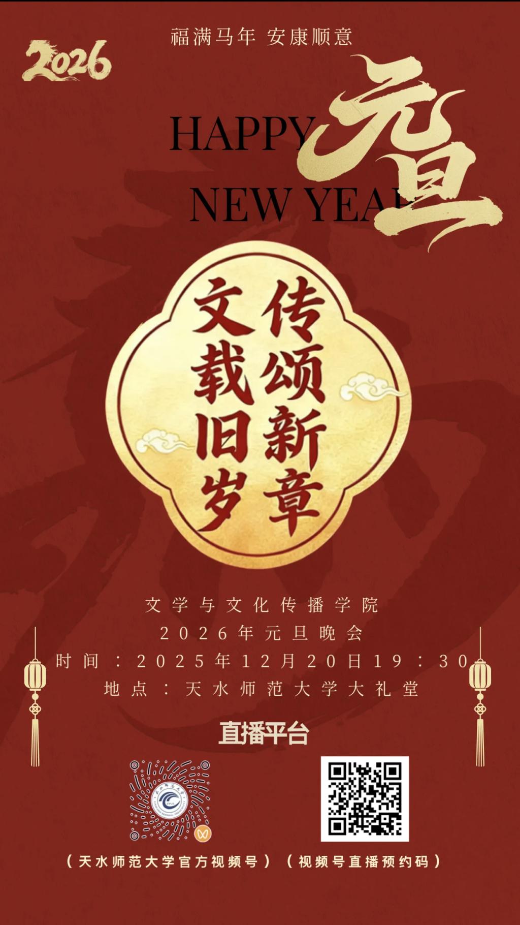 “文”载旧岁 “传”颂新章——beat365中文官方网站2026年元旦暨迎新晚会直播预告