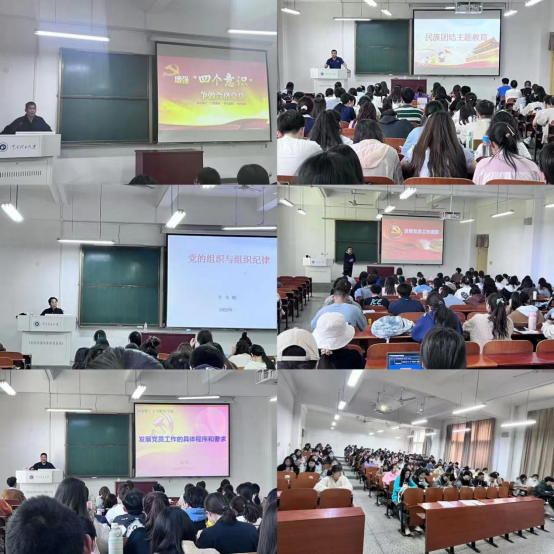 培训班为了突出学习培训的针对性,结合二十大精神,对入党积极分子的培训内容、授课安排、考勤管理等工作做了精心安排,邀请具有多年党务工作经验的老师,以党章党规、党史党性教育等内容为重点,采取了专题授课、观看纪录片、分组讨论和自学相结合的方式展开。李桂林、辛文昉、张良、徐凯和丁冬老师分别就《增强“四个意识”争做合格党员》《党的组织和党的纪律》《民族团结主题教育》《发展党员工作的具体程序和内容》等专题进行了生动地讲解,使学员们系统掌握了党的基本知识和基本理论。开展党课,是加强大学生思想政治教育的必要途径,是激发青年学生努力奋斗的重要基础,使得每一位入党积极分子都能在党的旗帜下找到自身发展的方向和坐标,积极发挥先锋模范作用。