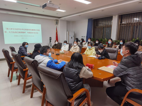 为深入学习宣传贯彻党的二十大精神和习近平总书记视察安阳重要讲话精神,11月21日晚,新葡萄8883官网amg官网本科生第五党支部组织全体党员在2102会议室,开展“深入学习习近平总书记视察安阳重要讲话精神,大力弘扬红旗渠精神”专题组织生活会。会议由党支部书记李岐峰主持。