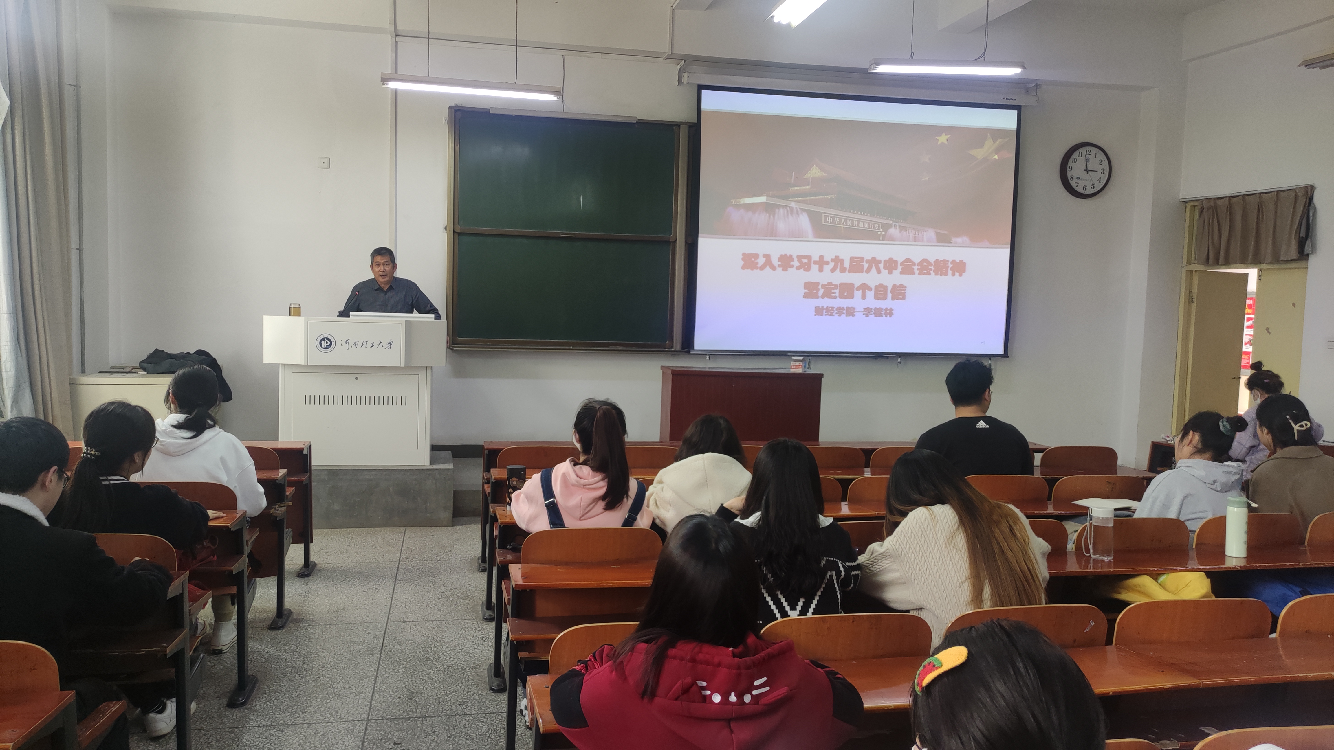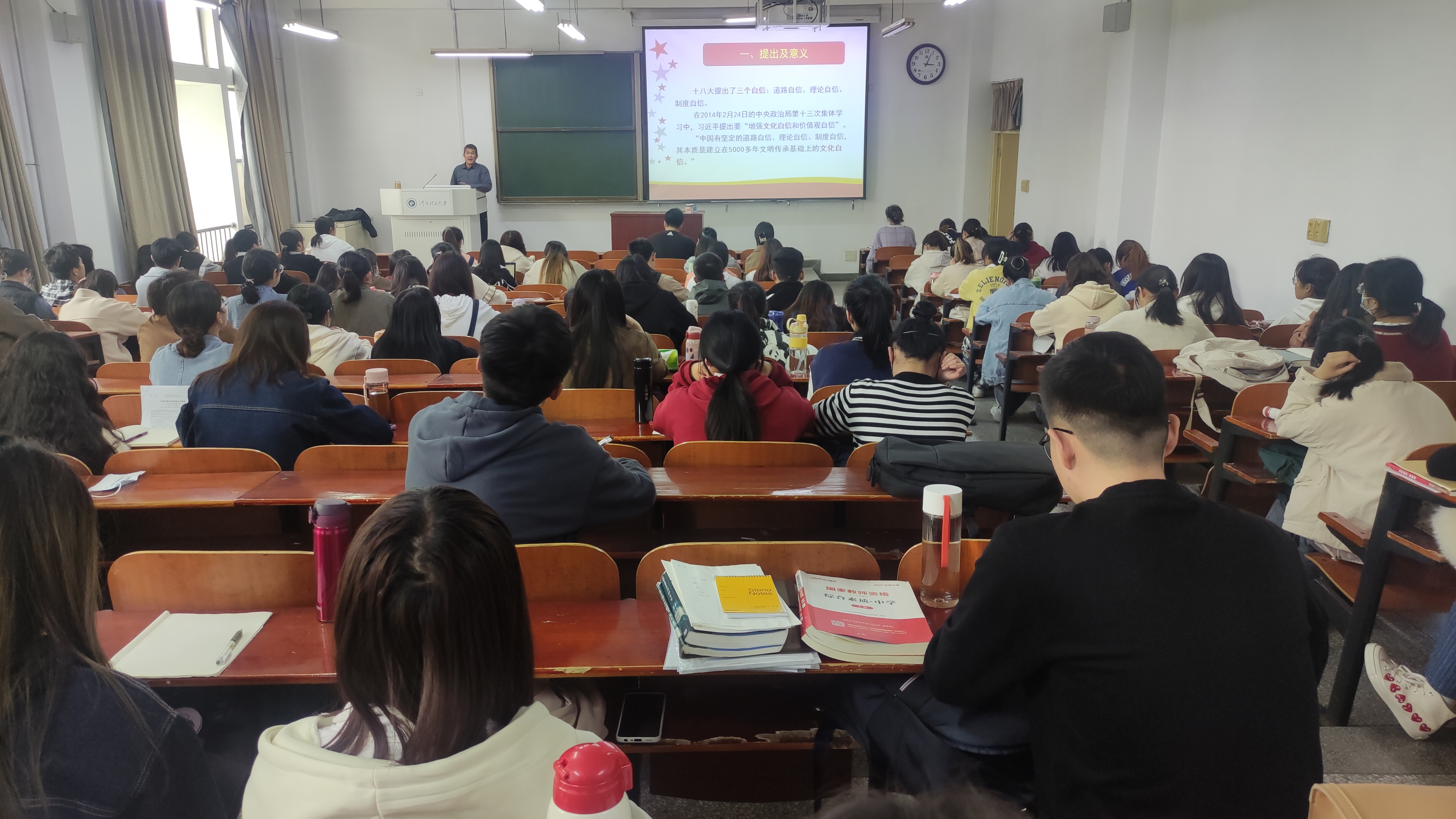 为使入党积极分子坚定“四个自信”,3月15日,学院党委书记李桂林走上讲台,以《深入学习十九届六中全会精神,坚定四个自信》为题讲授思政第一课。