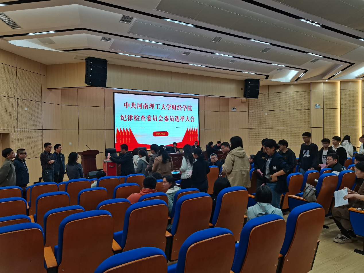 10月22日下午,中共河南理工大学新葡萄8883官网amg官网纪律检查委员会委员选举大会在经管楼一楼尚为学术报告厅举行。会议由新葡萄8883官网amg官网党委书记王景琳主持,全体教工党员和学生党员代表90余人参会。