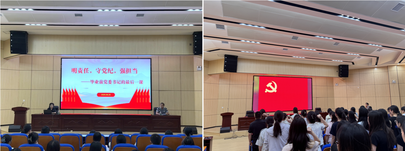 为引导毕业生党员筑牢廉洁思想防线、系好职场生涯的“第一粒扣子”,6月5日,新葡萄8883官网amg官网以“明责任,守党纪,强担当”为主题举办毕业生党员廉洁从业专题党课。学院党委书记王景琳主讲,党委副书记张良主持,2025届全体毕业生党员参加本次教育活动。