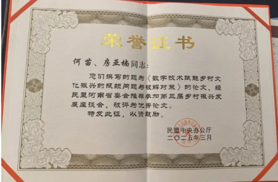 此次成果既是数字经济系在党建引领下党外人士履职尽责的生动实践,也彰显了党支部建设与统战工作协同发力、共绘乡村振兴同心圆的政治优势。