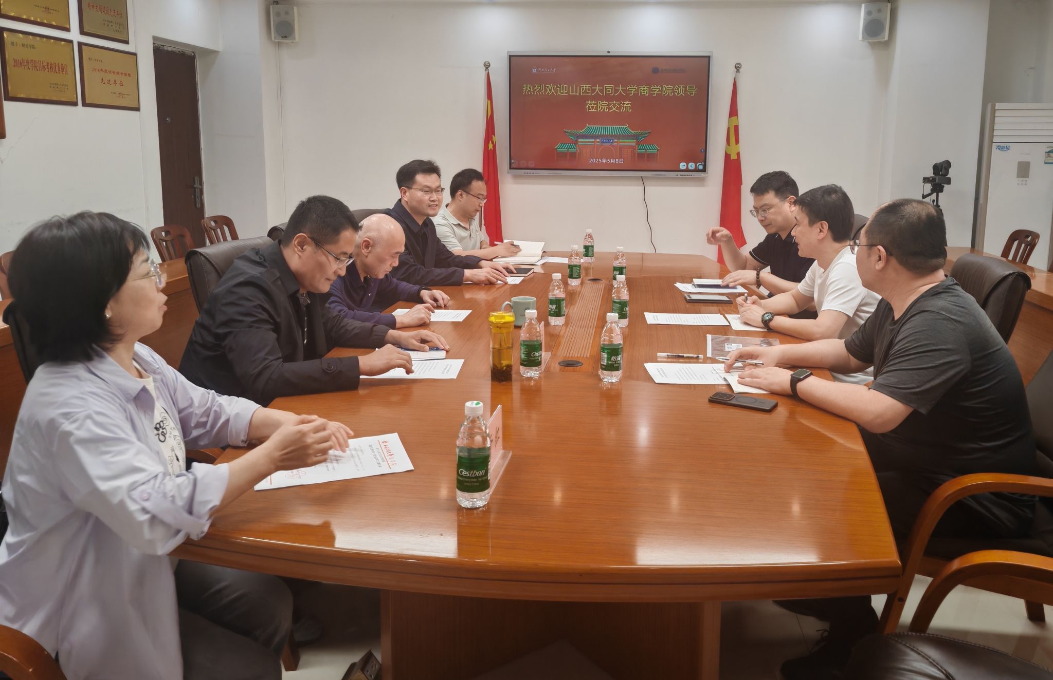 5月8日,山西大同大学商学院副院长李向荣一行莅临新葡萄8883官网amg官网,就数字经济专业建设开展专题调研交流。学院院长刘霞辉、副院长张圣利以及数字经济系相关负责人参加座谈,会议由副院长张圣利主持。