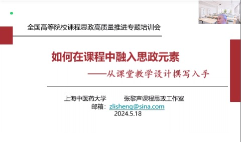 为落实立德树人根本任务,高质量推进课程思政建设,5月18日-19日,学院在2102会议室组织教师参加了《全国高等院校课程思政高质量推进》线上专题培训会,培训会由副院长张圣利主持。