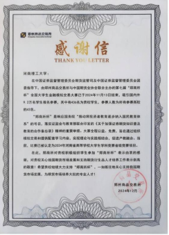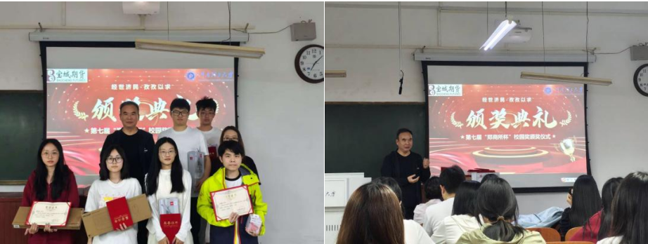 为积极响应国务院“将投资者教育逐步纳入国民教育体系”的号召,我校436名学生参加了郑州商品交易所与中国期货业协会联合主办的第七届“郑商所杯”全国大学生金融模拟交易大赛。我校参赛人数位居所有参赛高校的第43名,获得了大赛主办方颁发的优秀组织奖。4月17日晚,校园奖颁奖典礼在经管楼1202教室成功举行。