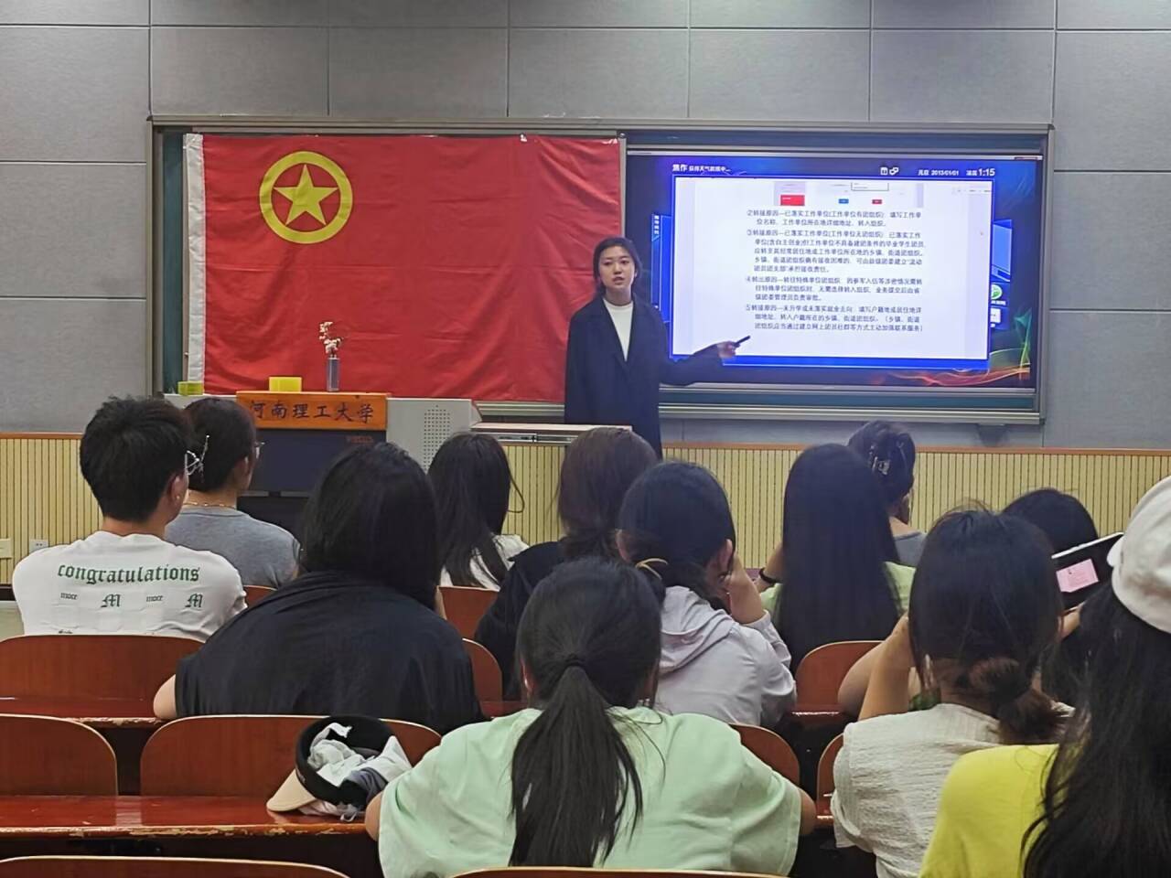 培训会上,主持人首先强调了毕业生团关系转接工作的重要性,指导毕业生代表做好毕业生团员教育和团员信息审查工作。随后,主持人结合实际案例,从毕业生团员的分类、转接条件、转接流程等方面进行了全面梳理,对转接过程中可能遇到的问题进行了深入剖析,详细讲解“学社衔接”工作过程中需要填写的文件以及注意事项,为大家提供了充分的指导和建议,切实保障毕业生“学社衔接”工作的高质量开展。同时,主持人针对各班级毕业生代表提出的问题进行了细致解答,加强团组织的沟通与理解,保证顺利、高效、准确地完成相关事项,为团组织的持续健康发展提供有力保障。
