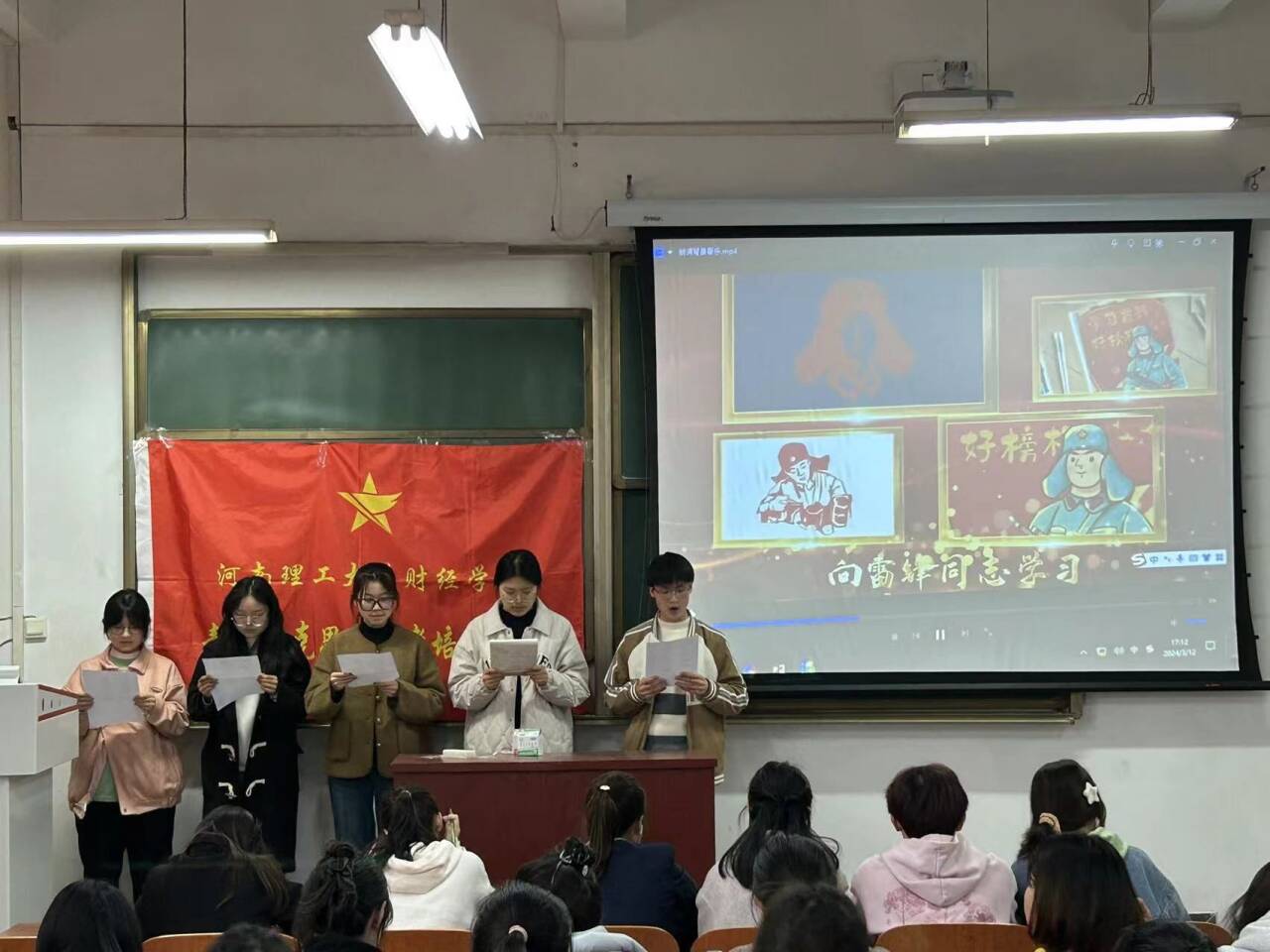 活动伊始,主持人从雷锋生平事迹出发,由党和国家领导人对雷锋同志的高度评价和精神阐释入手,向全体青马班学员宣扬了雷锋同志的优秀精神,号召广大青马班学员学习践行雷锋精神。随后进入小组展示环节,学员们通过主题演讲、诗歌朗诵、集体倡议等多样的形式进行展示,推动雷锋精神根植于心。其中,第三组以“忆雷锋,树新风”为题进行诗歌朗诵,激励大家以实际行动践行雷锋精神,深切地表达了要做雷锋精神传播者的坚定信念。最后一组学员采用朗诵和倡议相结合的形式,以日常生活为切入点,倡议大家从小事做起,向雷锋同志学习,引导大家将雷锋精神内化于心,外化于行。活动接近尾声,各小组成员积极参与、认真准备,用生动的语言、鲜活的事例,向大家展示雷锋同志的无私奉献、助人为乐的高尚品质,让学员深刻感受到雷锋精神的伟大力量,促进了各学员之间的团结协作,对提高青马班学员的奉献意识和增强社会责任感有着重要意义。