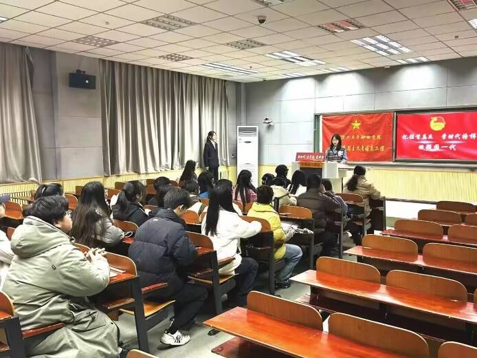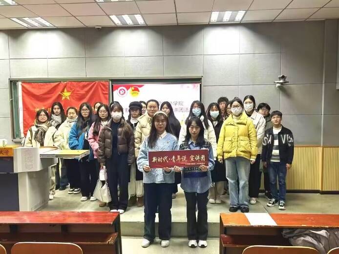 为深入学习贯彻习近平新时代中国特色社会主义思想和党的二十大精神,贯彻落实团十九大精神,引导团员青年坚定“四个自信”,新葡萄8883官网amg官网团委办公室邀请“新时代·青年说”宣讲团于12月26日在经管楼1203教室进行宣讲活动。