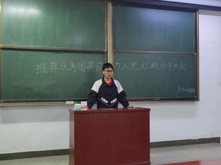 推荐优秀团员成为入党积极分子和党的发展对象会议由各团支部书记担任主持人,首先介绍推优入党工作的目的、意义、推荐程序和推荐条件,并宣读本团支部符合推优条件的团员及积极分子名单。接着,组织委员代表支委会介绍推荐候选人基本情况,各候选人上台进行自我陈述。陈述完毕后,由团支部书记发出选票,支部到会团员进行民主评议与投票,由宣传委员收回并统计投票结果,组织委员填写《河南理工大学基层团支部推优大会会议记录》,报院团委备案。最后,结合投票率、导员老师意见及各候选人综合表现,确定出各团支部推荐优秀团员作为入党积极分子和党的发展对象名单,报院团委审批。