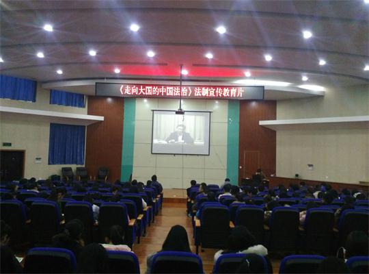 为迎接法制宣传周的到来,增强学院师生法治意识,增进师生对我国法治建设进程的了解,11月17日下午,学院组织师生在经管楼学术报告厅集体观看法治讲座视频《走向大国的中国法治》。学院部分教师和2016级金融、国贸专业的学生参加了此次活动。