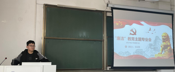 会议初始,主持人以党的“自我革命”为题,讲述了廉洁教育的重要性。没有廉洁教育,我们的党纪国法、校规校纪的执行就没有公平公正。没有了公平公正,人民何谈幸福,社会又何谈进步。接着又举例国民党腐败黑暗、美国金主政治、苏联分裂解体等历史,详细论述了廉洁教育的重要性、必要性、迫切性。