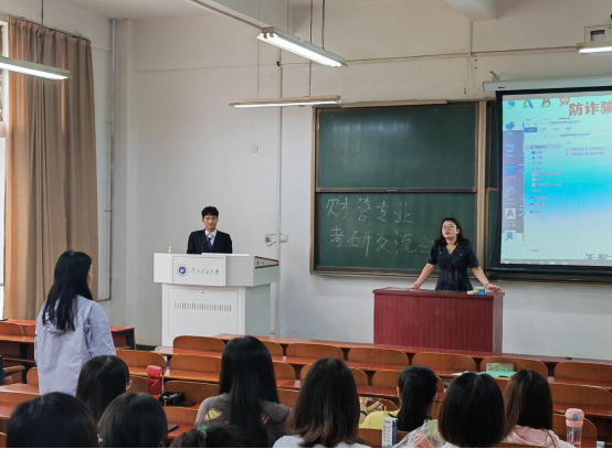 活动按新葡萄官网专业分类分为四个活动现场,分别为国际贸易、财务管理、金融和会计考研交流会。活动伊始,主持人上台介绍交流会流程,接着进入报告交流阶段,每个专业各有三名成功上岸的学长学姐进行经验分享。学长学姐们知无不言,言无不尽,全方面系统化地向我们讲解了考研的过程及价值,并细致地分享了自己的学习方法、备考计划和学习心得,同学们听得目不转睛。然后进入了互动提问环节,同学们都积极主动地踊跃提问,学长学姐们依据问题结合自身实际有针对性、有代表性地对同学们的问题进行一一解答交流。最后,主持人上台向分享经验的学长学姐们致谢并宣布本次活动圆满结束。