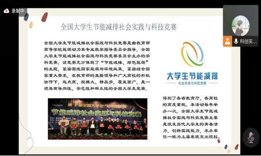 会议伊始,由科创实践部成员对大学生节能减排社会实践与科技竞赛进行基本介绍,简单讲述节能减排的意义,随后,由杜佳明同学为参会人员详细讲解竞赛相关规则及作品前中后期的准备事项,同时给大家分享自己大学的参赛体会,使同学们对大赛参赛流程的了解更加清晰,并给了同学们更多的信心和经验帮助。会议最后,由其进行答疑解惑,同学们积极询问。