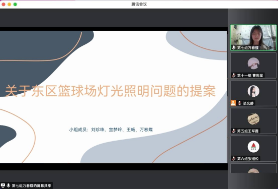 为提高同学们参与学校民主管理的主动性与积极性,关注和关心学校发展,4月5日中午,由新葡萄官网学生会生活权益部主办的以“民生基建规划、教育教学改革、校园文化建设、创新创业服务”为主题的校园提案大赛于腾讯会议上成功举办。新葡萄官网三十余名学生参与了此次活动。