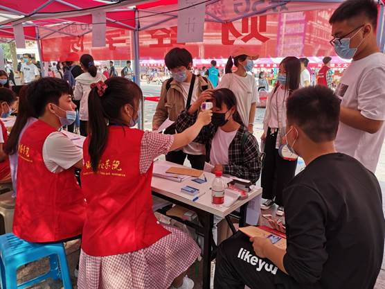 早上6:00,迎新现场各项工作已布置妥当,学院各相关部门的迎新人员也准备就绪。在指导老师和学生志愿者的引导下,20级学生陆续地前来报到,填写个人信息,办理入学手续和宿舍入住手续。学生志愿者们统一身穿红色马甲,佩戴工作牌证,帮助新生看管行李,指引道路,表现了学长学姐们对20级新生的欢迎与热爱。新葡萄官网教工党员志愿者们组成服务车队,亲自在校门口接待新生,帮助他们搬运行李并送回宿舍,深刻体现了新葡萄官网老师对20级学子的关怀与照顾。此次活动过程中,新葡萄官网积极响应国家防疫号召,高度重视学生身体健康问题,要求学生统一上交个人健康登记表,并对入校学生进行体温测量,严格禁止不相关人士、带有不良症状学生入校,保证在校学生人身安全。其次,新葡萄官网老师非常关心20级学子的家庭情况,关注贫困学子,亲自在迎新处询问新生家庭情况并通知“绿色通道”等相关事宜,为贫困生提供了一定的生活保障。为进一步获取新生动态,了解学生个人情况,新葡萄官网老师多次亲临现场,给予新生鼓励与关怀。