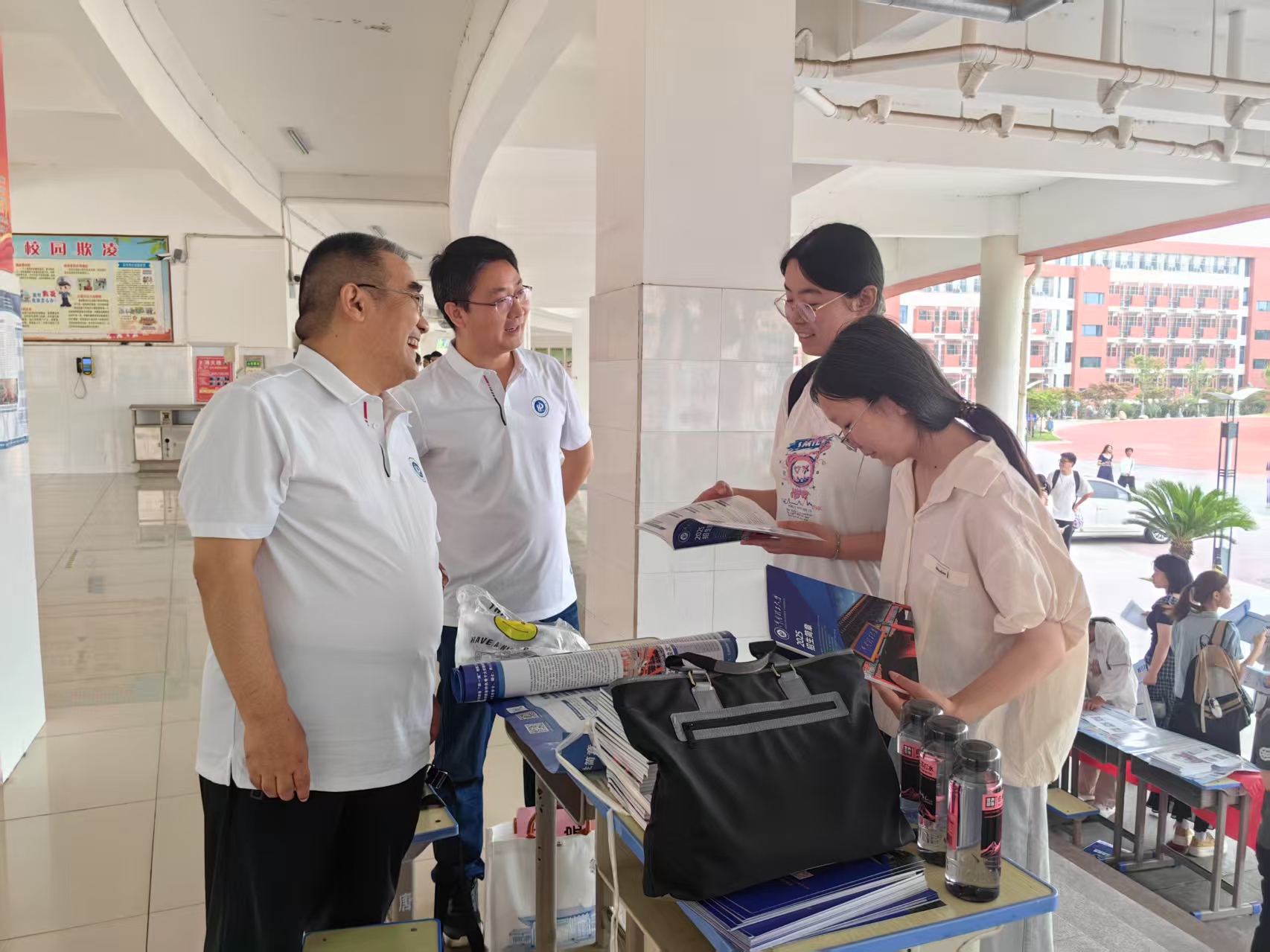 精锐尽出,组建专业化宣传团队。学院党委副书记张良、副院长江书军带领会计系主任王玉法、实验中心主任石勇组成专项工作组,提前参与学校招就处组织的“新高考”政策培训会,系统研读招生资料,深度掌握学校历史沿革、学科优势、专业设置及育人条件,以“政策通”“专业通”的过硬素养做好宣讲准备。面对连日高温与跨区域奔波的挑战,团队始终保持高效工作状态,确保宣传服务质量。
