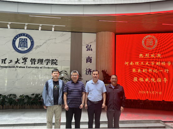 5月29日,学院副书记张良一行4人赴武汉理工大学管理学院就学生教育与考研、人才引进、一流本科专业建设、实验室建设等相关事宜进行深入调研交流,实验室主任石勇、会计系主任王玉法、会计系引进武汉理工大学博士曹耀威陪同调研。