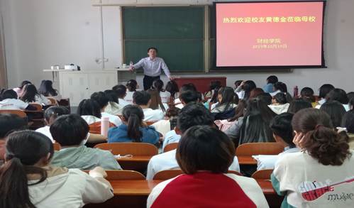 黄德金校友在感叹学院近年发展变化之快的同时,也深深感受到了学院对校友的尊重与重视,回忆起当年在学校学习、生活的片段和难忘经历,感谢了老师们当年的言传身教、学校的培养为自己打下的坚实基础,使自己在日后的工作中能够从容应对,得心应手。黄德金学长勉励同学们利用好身边一切可用的资源为未来走入社会奠定基础。同时,黄德金学长希望同学们从思想上提高认识,建立“靠谱”的人格,