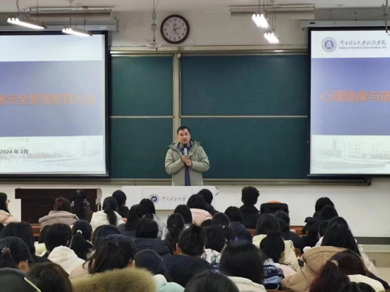 2月27日下午,新葡萄8883官网amg官网在三号教学楼3106教室召开新学期心理健康与宿舍安全管理教育大会。学生干部代表和全体宿舍长共270余人参加会议。学院党委副书记张良出席会议并讲话。会议由辅导员王妍主持。