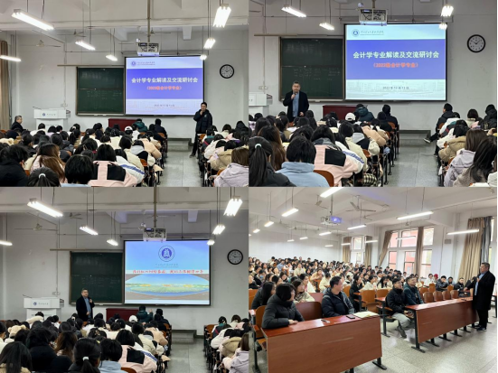 为了落实整改学校第三轮巡察提出的专项问题,帮助2023级新生深入认识专业前景,明确专业学习目标和未来职业发展方向,解决同学们学习中的疑难困惑,端正同学们的学习态度,进一步营造孜孜不倦、专心致志的专业育人氛围。12月13日,学院在经管楼1206召开了会计学专业解读及交流研讨会,副院长江书军、系支部书记田月红老师、会计系主任王玉法、青年教师代表曹耀威、杨以诺以及2023级会计学专业全体学生参加了会议。