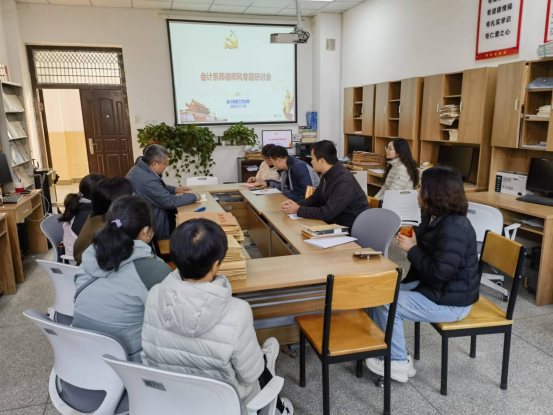 11月14日下午,会计系全体教师在财经1403会计系办公室召开2023年秋季学期师德师风专题研讨会,研讨会由会计系支部书记田月红主持。