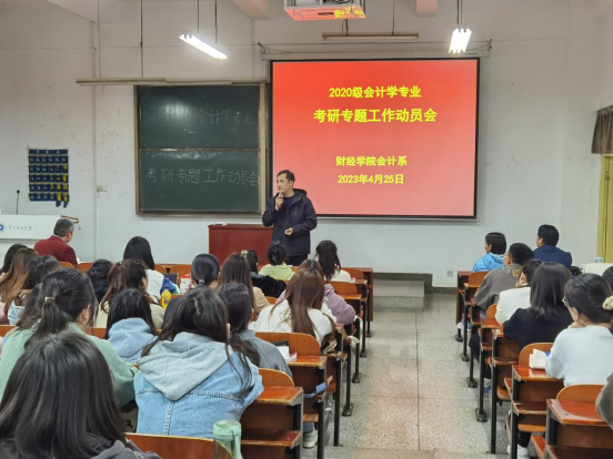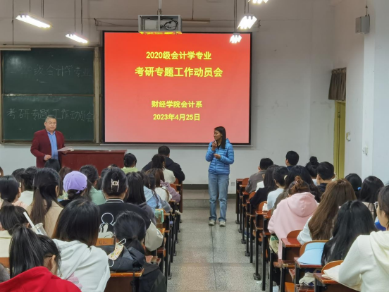 动员会上,学工办主任冯莉首先为同学们介绍了会计学专业2019级研究生考试的大体情况数据,她强调报考时一定要事先了解各大高校往年的报考人数以及录取人数,和导师之间要有所沟通,争取以最大的把握被录取。她鼓励同学们认真踏实复习、科学选择学校、积极应对考试,通过自己的努力取得好成绩。