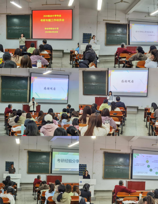 为充分调动学生考研积极性,帮助学生分析当前考研形势、明确考研目标、掌握备考方法,营造良好的考研氛围,4月25日下午,新葡萄官网会计学专业在经管楼1112教室举行考研动员暨经验分享交流会。学院党委副书记张良、会计系支部书记江书军、学工办主任(学生支部)冯莉出席,2020级会计支部及全体同学参与本次交流会。会议由新葡萄官网会计系主任王玉法教授主持。