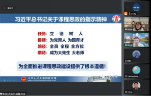杨洪涛教授围绕“准确把握课程思政的精神实质”“全面夯实课程建设的内涵和外延”“做好教学内容与课程思政契合”三个主题展开报告。报告分析了党和国家对高校课程思政建设的相关部署要求,深入解读了课程思政“为什么、是什么、、做什么、怎么做和谁来做”,同时结合自己对课程思政的认识、理解和践行情况,分享了他实施课程思政建设的丰富案例和经验。他指出,课程思政是一种课程观,要坚持思政课程显性思政教育功能与专业课程隐性思政教育功能,要结合专业课程特点,以“润物无声”的方式将正确的价值追求、理想信念和家国情怀有机融入教学设计、教学内容,并通过教学实践有效地传递给学生。每位教师要充分理解课程思政的丰富内涵,努力追求“真善美”,积极将课程思政从“干巴巴的说教”向“热乎乎的教学”转变,促进课程思政入耳、入脑、入心,共同构建课程门门有思政、教师人人讲育人的课程思政工作格局。学院教师也就课程思政有关问题与杨洪涛教授在线上进行了深入交流。