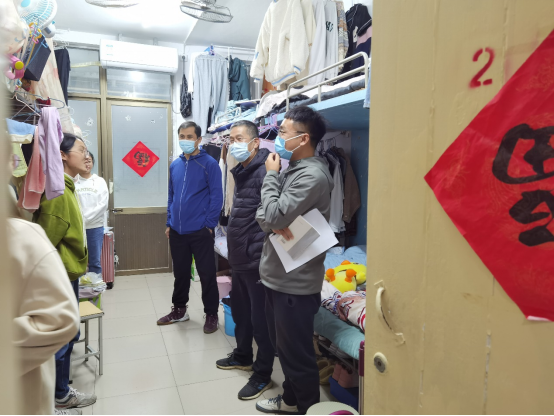 在疫情防控的特殊时期,老师走访学生宿舍,全面了解了同学们的学习生活情况,加强了学院与学生之间的沟通交流,进一步推动了该院的宿舍文明建设,为疫情期间打造平安校园奠定了坚实的基础。