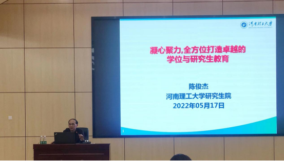 报告会上,陈俊杰院长围绕新时代研究生导师的责任与担当,从“学位与研究生教育面临的机遇与挑战”,指出了全国和河南省学位与研究生教育机遇与挑战并存的局面,深刻分析了我校研究生招生以及培养工作的现状,强调要高度重视研究生管理队伍的建设;从“研究生培养过程管理与质量保障”提出学院在研究生培养过程中,要制定体现学科特色的课程,专业学位研究生要注重以原创性和精品案例库作为重要支撑,同时对研究生在论文写作和成果产出方面应重点关注的工作做了详细的分析;从政治素质过硬、师德师风高尚、业务素质精湛对研究生导师提出了新的要求,明确了导师在研究生培养过程中的职责;接着,就我校研究生毕业论文中出现的问题与各位导师进行了探索与交流。最后陈俊杰院长勉励各位研究生导师:做学生的良师益友,是一种工作的态度和境界。