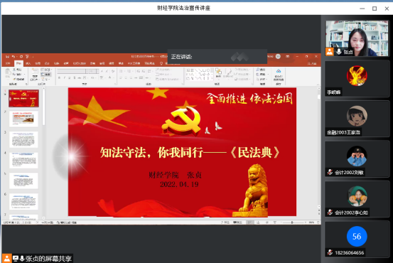 根据学校《关于开展法治教育宣传周活动的通知》,新葡萄官网积极开展法治宣讲活动。围绕学习宣传贯彻习近平法治思想,由新葡萄官网张贞老师开展线上讲座,加强面向师生的法治知识讲座。