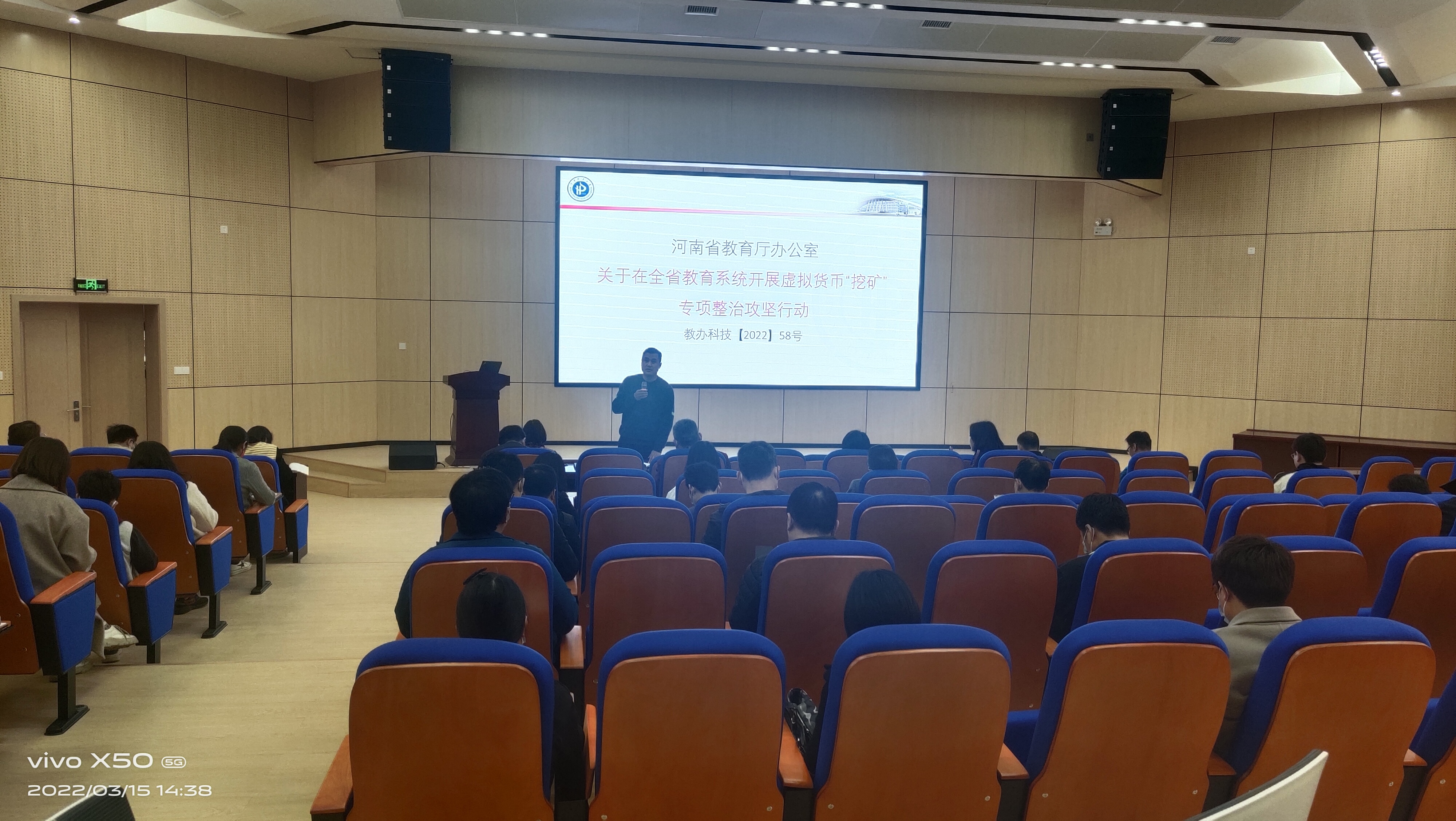 为认真贯彻落实《河南省教育厅办公室关于在全省教育系统开展虚拟货币“挖矿”专项整治攻坚行动的通知》文件要求,3月15日下午,新葡萄8883官网amg官网在尚为学术报告厅开展虚拟货币“挖矿”专项整治活动部署动员会。会议由学院院长梁丽娟主持,全体教职工参加会议。