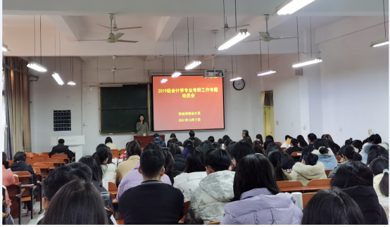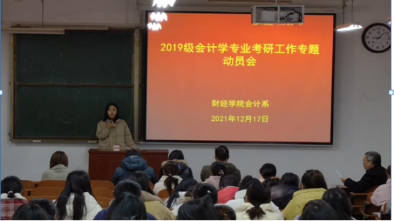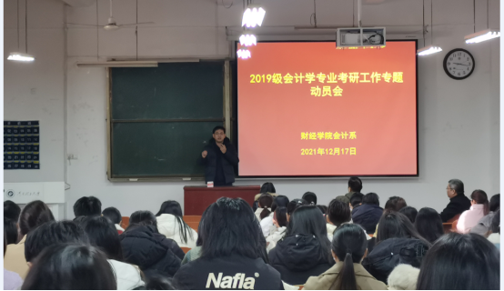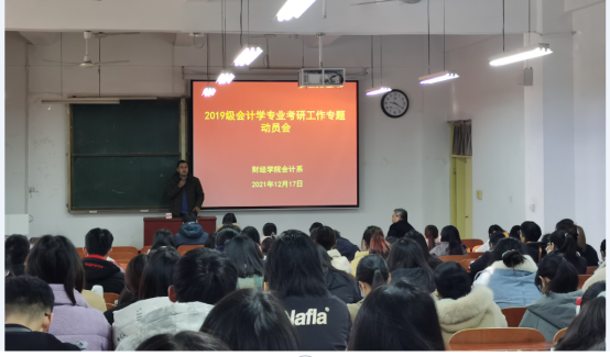 为营造优良学风,帮助学生及早确立考研目标,获取考研经验,树立考研信心,12月17日上午,新葡萄官网在经管楼1112教室召开2019级会计专业考研工作专题动员会。院党委副书记张良、学工办主任冯莉、会计系新进教师曹耀威博士、2021级研究生代表孙明芳、耿宇及2019级会计专业全体学生参加本次动员会。会议由新葡萄官网会计系主任王玉法教授主持。